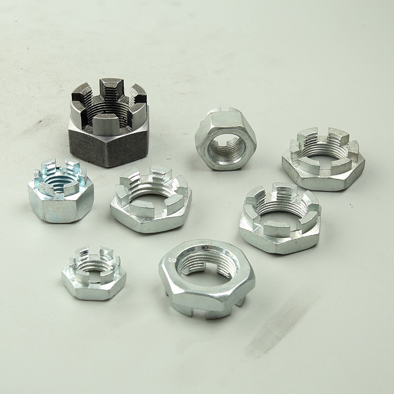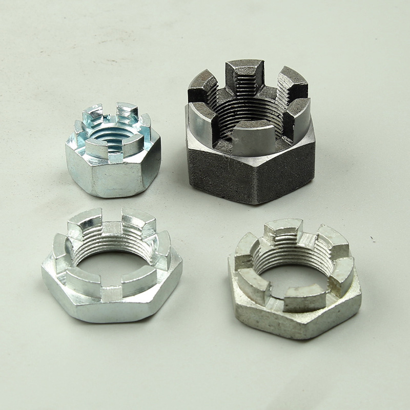 स्लॉट के साथ यह डबल सुरक्षित क्राउन नट स्टीयरिंग ट्रांसमिशन सिस्टम, सस्पेंशन सिस्टम और ऑटोमोबाइल की एक्सल संरचना में एक महत्वपूर्ण घटक है। इसका मुख्य कार्य स्टीयरिंग टाई रॉड एंड या बॉल जॉइंट जैसे घटकों को ठीक करना है, और इसे एक खुले पिन द्वारा मजबूती से लॉक भी किया जा सकता है।
