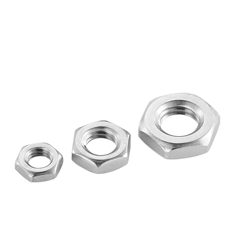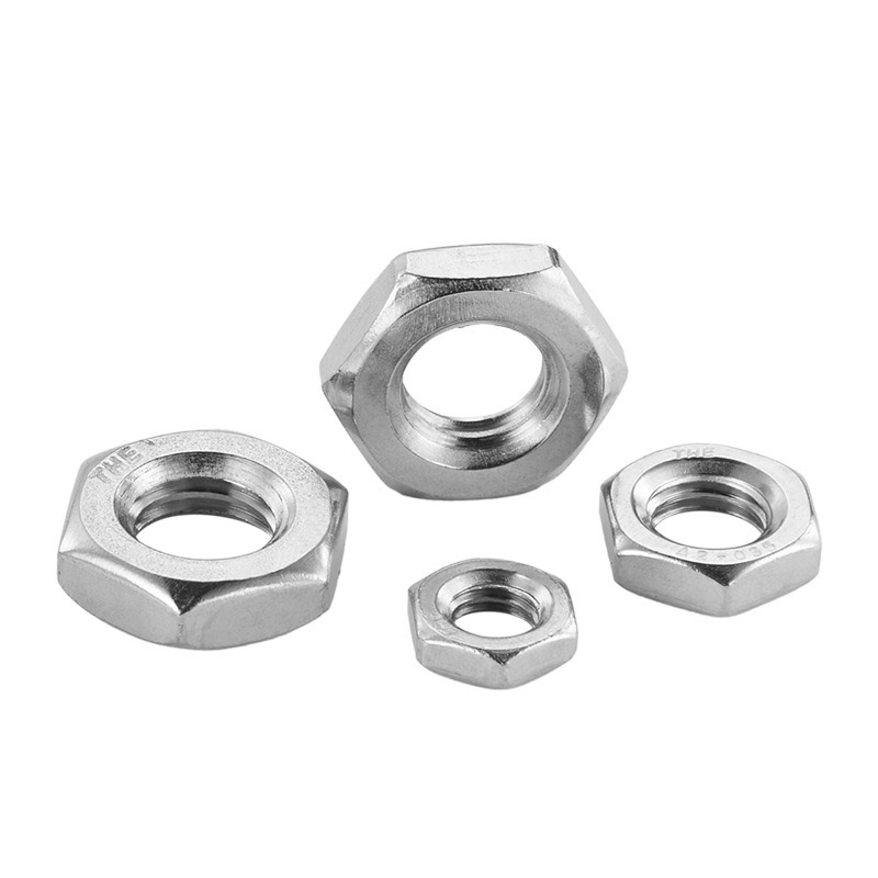 ठीक पिच थ्रेड के साथ हेक्सागोन अतिरिक्त फ्लैट नट का उपयोग अंतरिक्ष और सटीकता के लिए सख्त आवश्यकताओं के साथ यांत्रिक, इलेक्ट्रॉनिक या मोटर वाहन घटकों के लिए किया जाता है।