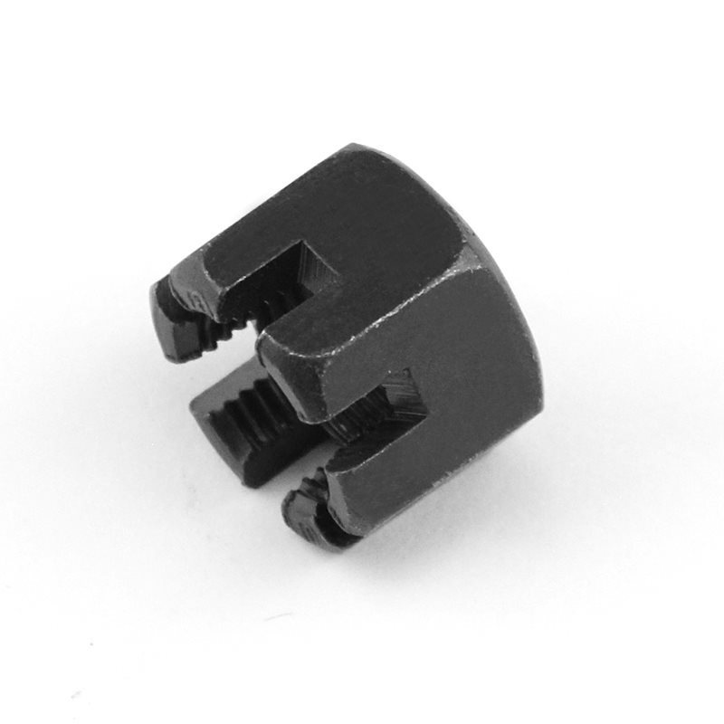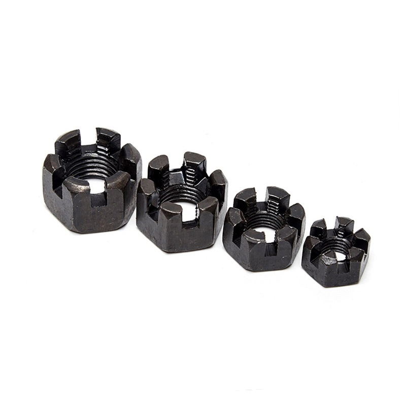 | प्रमुख विशेषता | शीर्ष पर इन स्लॉट्स का उपयोग लॉकिंग पिन या सुरक्षा रस्सियों को रखने के लिए किया जाता है। एक बार जब आप नट को कस लें, तो इन स्लॉट्स और बोल्ट पर छेद के माध्यम से पिन को पास करें। यह इसे जगह में ठीक कर देगा (तेज कंपन के साथ भी, नट ढीला नहीं होगा)। यह एक सरल यांत्रिक लॉक है जिसमें किसी भी जटिल कोटिंग या अतिरिक्त घटकों की आवश्यकता नहीं होती है। |
