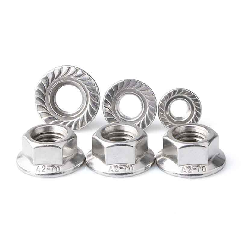 फ़्लैंज के तल पर छोटे-छोटे दाँतेदार दाँत होते हैं। ये उन्हें वास्तव में कंपन का अच्छी तरह से विरोध करने में मदद करते हैं, ताकि चलते हुए भार के दौरान वे ढीले न हों। एक अलग वॉशर के साथ नियमित नट का उपयोग करने की तुलना में यह एक बड़ा प्लस है।