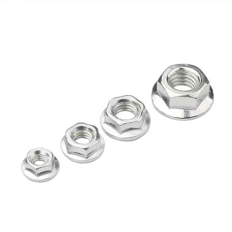 फ्लैंज के साथ उच्च दक्षता वाले हेक्सागोन नट सामान्य अंतरराष्ट्रीय मानकों का पालन करते हैं जो उनके सटीक आकार और यांत्रिक गुणों को निर्धारित करते हैं। मुख्य मानकों में ISO 4161 (DIN 6926 हुआ करता था) और ASME B18.2.2 शामिल हैं। आकार फ्लैटों में हेक्स चौड़ाई (एएफ), कुल ऊंचाई, निकला हुआ किनारा व्यास, और धागे का आकार/पिच (जैसे एम12x1.75) जैसी चीजों को कवर करता है। निकला हुआ किनारा व्यास हेक्स भाग से बड़ा है, यही कारण है कि यह भार को फैलाने में मदद करता है। वे सामान्य मीट्रिक और इंपीरियल धागे के आकार में आते हैं, आमतौर पर M5/M6 से M36 तक, या 1/4" से 1.5" तक, इसलिए वे विभिन्न इंजीनियरिंग आवश्यकताओं के लिए काम करते हैं।