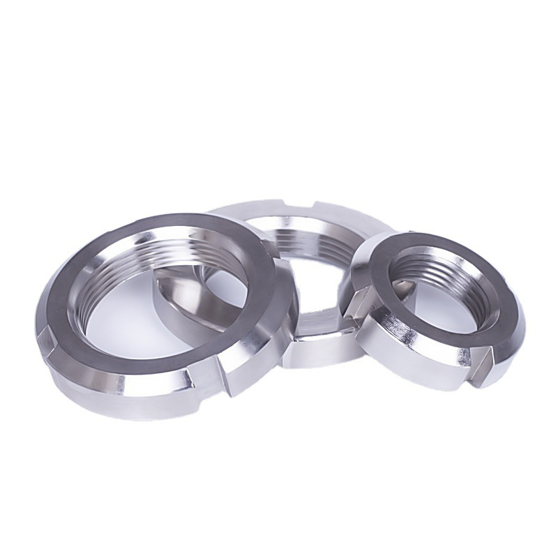 प्रिसिजन मशीन्ड स्लॉटेड राउंड नट विशेष फास्टनर होते हैं जिनका उपयोग यांत्रिक उपकरणों पर भागों को रखने के लिए किया जाता है जहां नियमित नट कंपन से ढीले हो सकते हैं। नट का मुख्य उपयोग कारों और औद्योगिक मशीनों पर होता है - विशेष रूप से धुरी, शाफ्ट और चलने वाले हिस्सों पर जिन्हें स्थायी लॉक की आवश्यकता होती है।