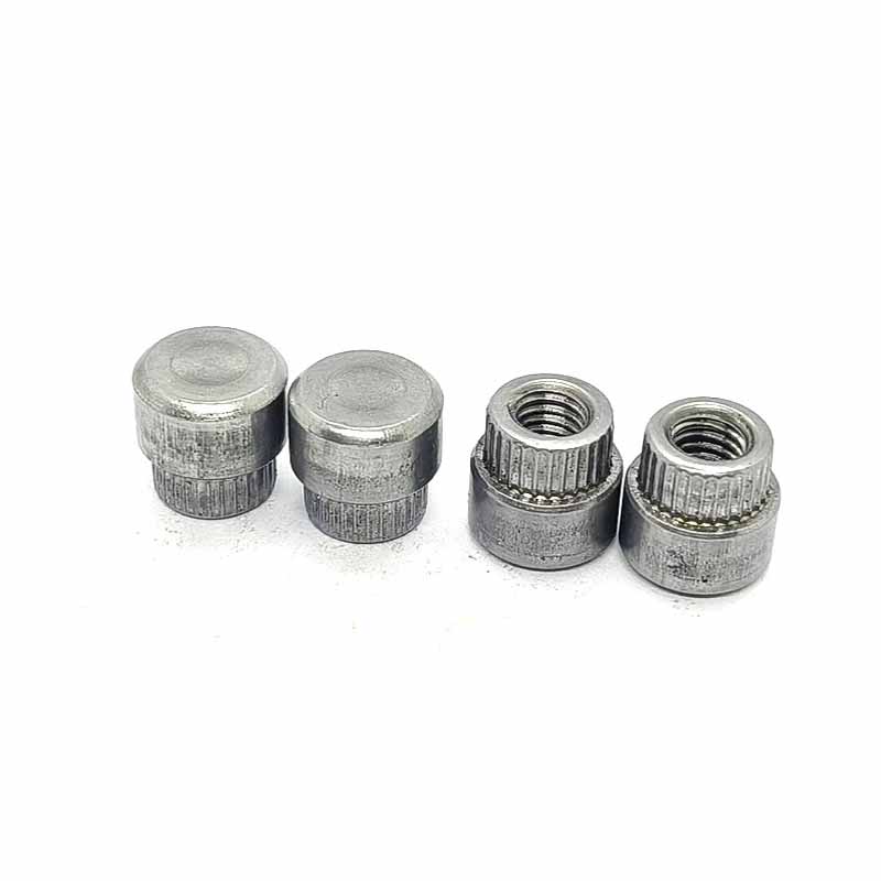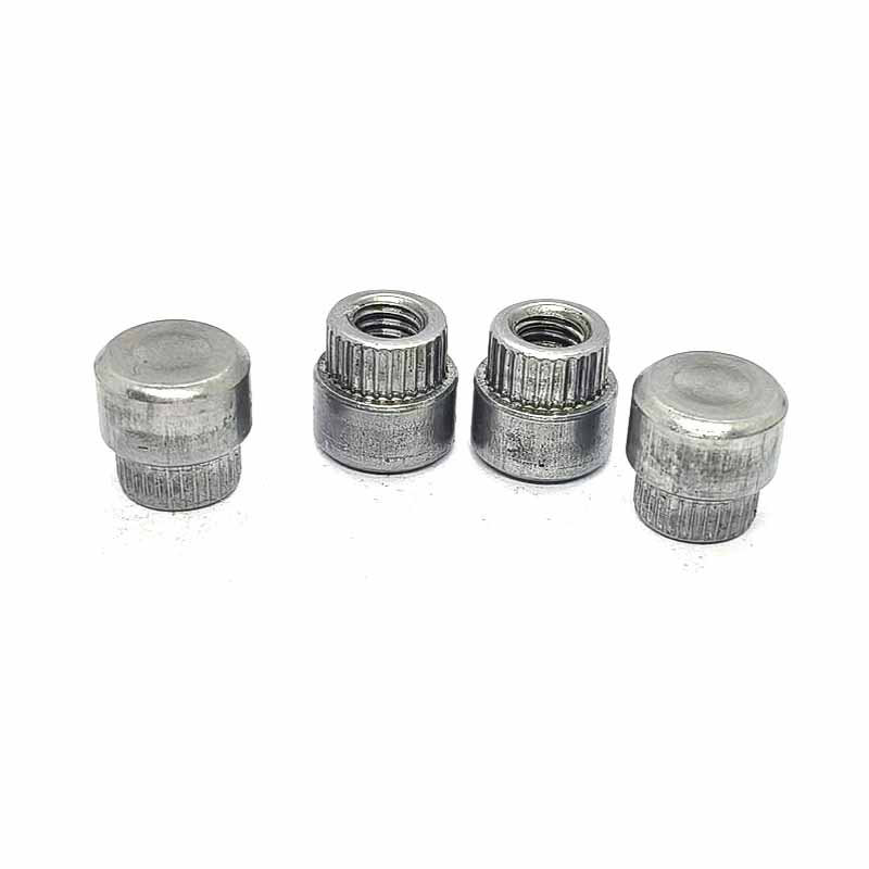 यह सेल्फ क्लिनिंग राउंड रिवेट बुश स्थायी, कंपन-प्रूफ फास्टनिंग के लिए बनाया गया है। यहां बताया गया है कि यह कैसे काम करता है: आप एक पूर्व-ड्रिल किए गए छेद में विस्तारित भाग को नीचे की ओर चिपकाते हैं। जब आप इसे स्थापित करते हैं, तो आमतौर पर एक रिवेट गन या एक प्रेस के साथ, यह हिस्सा बैकसाइड (जिस तरफ आप नहीं देख सकते हैं) और एक ठोस यांत्रिक लॉक बनाते हुए, पीछे की तरफ, बाहर की तरफ विकृत हो जाता है। उसी समय, अखरोट पर निकला हुआ किनारा और नटखट सतह को पकड़ते हैं और जब आप इसे कसते हैं तो दबाव फैलाएं।
