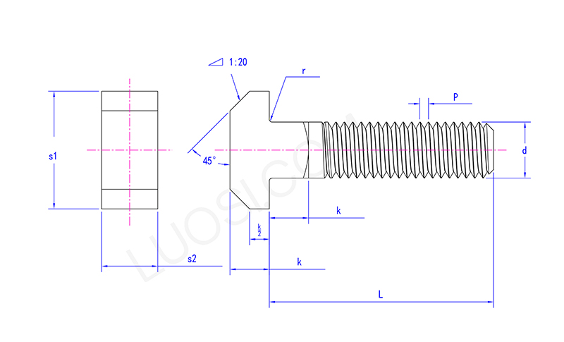 स्क्वायर नेक टी बोल्ट का सिर एक क्षैतिज रूप से "टी" आकार है, जो "टी" अक्षर की तरह है। यह विस्तृत टी-आकार का सिर बोल्ट को उपकरणों के टी-आकार के खांचे में फंसने में सक्षम बनाता है, बोल्ट को बाहर खींचने से रोकने में भूमिका निभाता है।