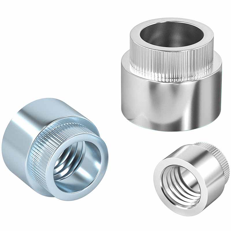 इस बीच, राउंड नट के हिस्से में नियमित धागे होते हैं। बिग नूर्ड निकला हुआ किनारा दो काम करता है: यह निचोड़ बल को फैलाता है, इसलिए यह पतली सामग्री को डेंट नहीं करता है, और जब आप एक बोल्ट को अंदर या बाहर मोड़ते हैं, तो पूरे गोल रिवेट झाड़ी को कताई से रोकने के लिए सतह में काटने वाले (वे छोटी लकीरें) सतह में काटती हैं।