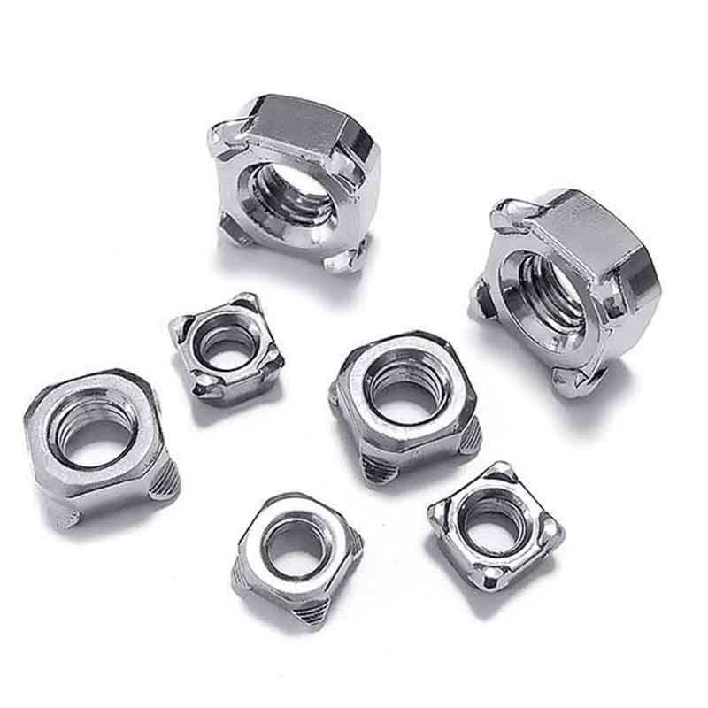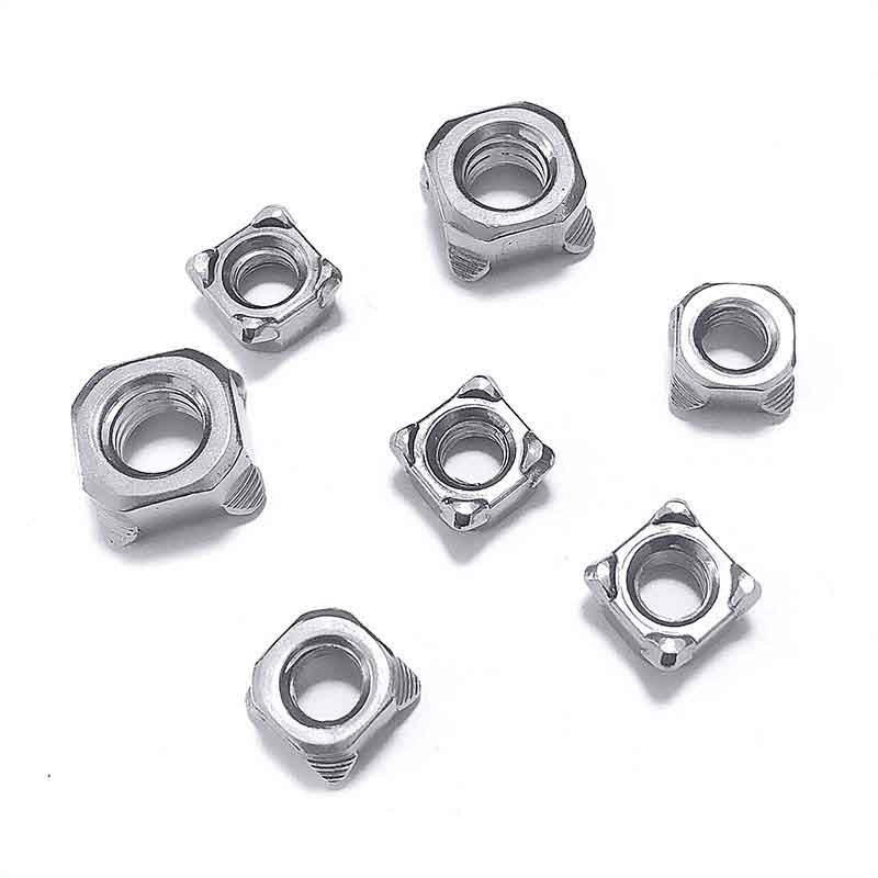 यदि आप स्पॉट वेल्डिंग उपकरण का उपयोग करते हैं, तो बी स्क्वायर वेल्ड नट आमतौर पर टाइप ए की तुलना में अधिक उपयुक्त विकल्प होते हैं। ये उभरे हुए उभार वास्तव में स्पॉट वेल्डिंग इलेक्ट्रोड टिप को उन पर दबाव डालने की अनुमति देने के लिए डिज़ाइन किए गए हैं। प्रोट्रूशियंस वेल्डिंग वर्तमान पथ को नियंत्रित करते हैं और अनुमानित रूप से पिघल सकते हैं, जिससे एक मजबूत वेल्ड कोर बनता है। यह उन्हें बड़े पैमाने पर उत्पादन के लिए स्वचालित स्पॉट वेल्डिंग उत्पादन लाइनों के साथ अत्यधिक अनुकूल बनाता है। गोलाकार नट की तुलना में चौकोर किनारों को स्थापित करना आसान होता है। बस उन्हें लोहे की प्लेट पर रखें और आप तुरंत बता सकते हैं कि वे सही तरीके से रखे गए हैं या नहीं। चार वेल्डिंग प्रोट्रूशियंस एक ही आकार के हैं, और वे वेल्डिंग के दौरान समान रूप से गर्म होते हैं, जिससे इसके गलत संरेखित होने की संभावना कम हो जाती है। थ्रेडेड छेद सीधे होते हैं, और बोल्ट बिना अटके आसानी से डाले जा सकते हैं। भले ही लोहे की प्लेट थोड़ी विकृत हो, जब तक नट को सही ढंग से वेल्ड नहीं किया जाता है, बोल्ट को सभी तरह से कड़ा किया जा सकता है।